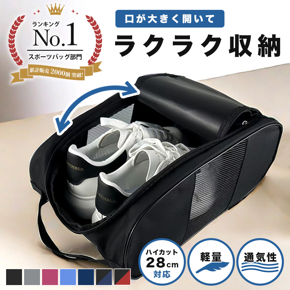 【大きく開いてラクラク収納!通気性抜群のシューズバッグ】