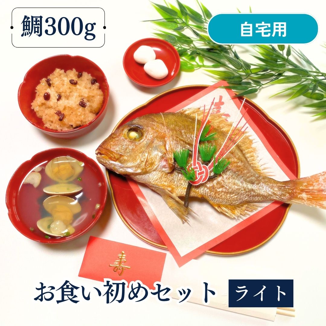 お食い初めセット≪ライト≫ 鯛300g(1~2人前サイズ) 自宅用(段ボール) 料理 焼き鯛 はまぐり吸物 歯固め石 赤飯 尾頭付き 塩焼き 敷き紙 お飾り 祝い箸