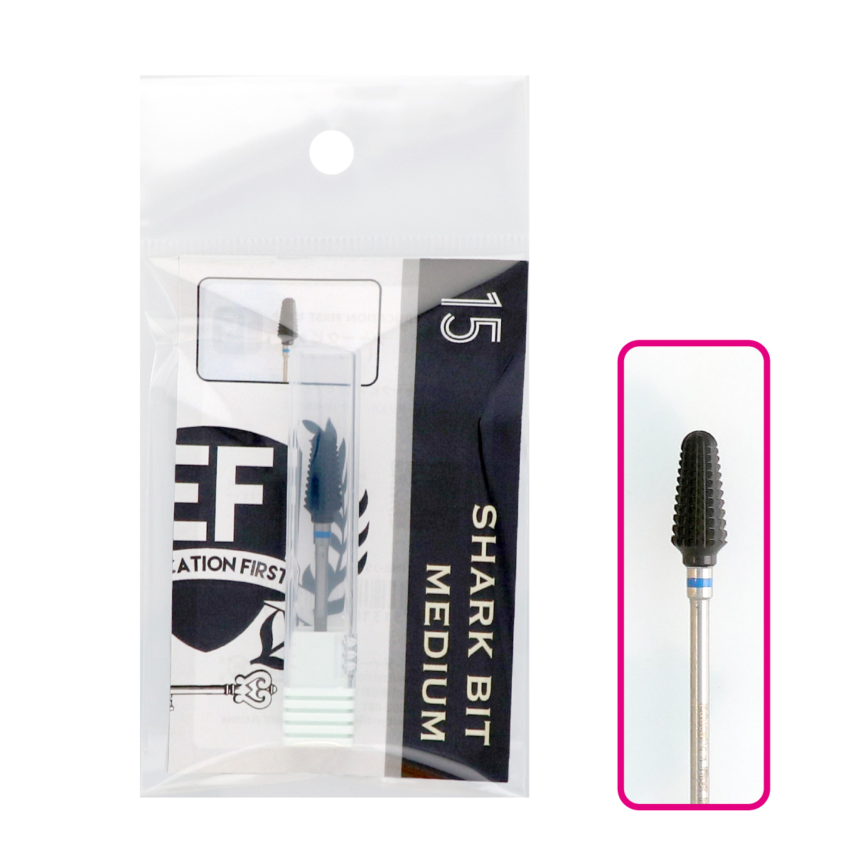 商品説明ネイルを愛する全ての人へ安全なネイルマシンワークとビットをお届けするネイルブランドEDUCATION FIRSTプロデュース#15 シャークビット(ミディアム)はハードジェル、アクリルの削りに。サイズ:約W119mmxH71mmxD11mm単品重量:約10g