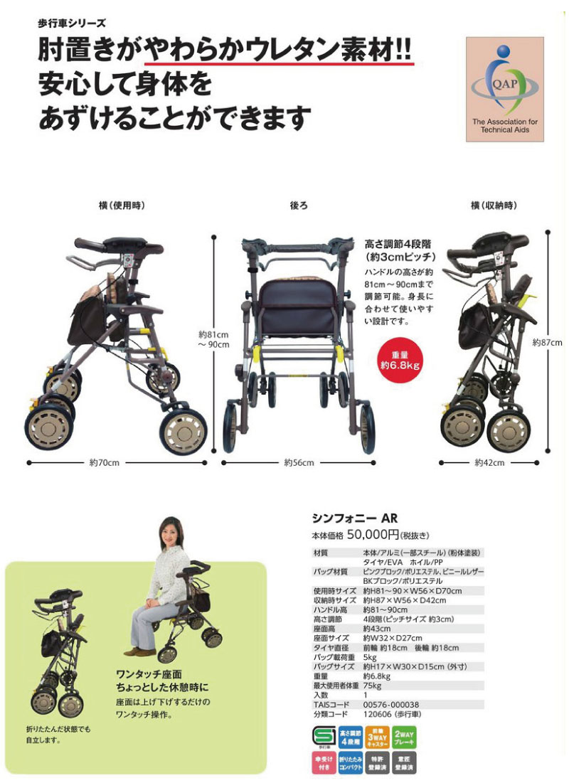 歩行車 歩行器 折りたたみ SGマーク シンフォニーAR 島製作所 高齢者用 介護 リハビリ