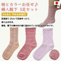 柄お任せ 神戸生絲 3足組 1セット 国産 しめつけない 足首ゆったり靴下 履きやすいソックス 介護衣料 介護 靴下 入院用 母の日 敬老の日 誕生日 入所 入院 シニア