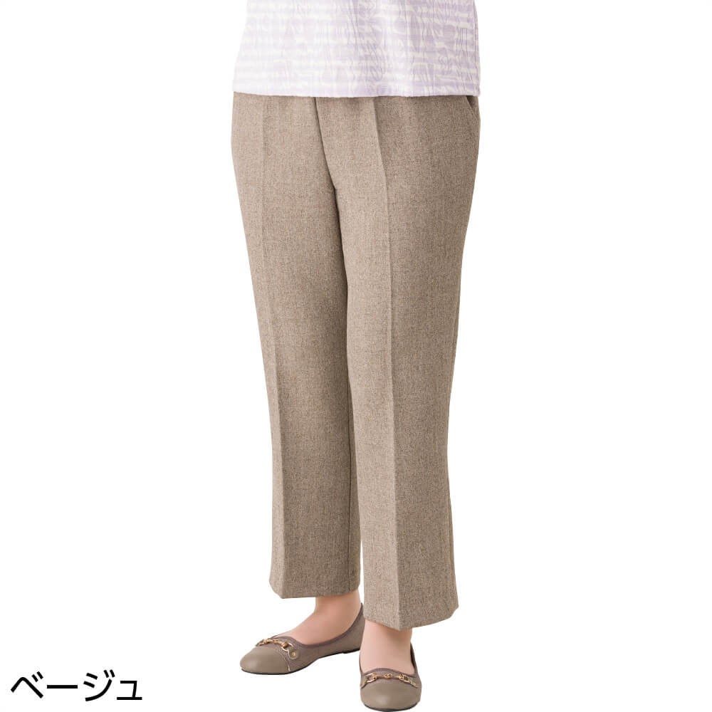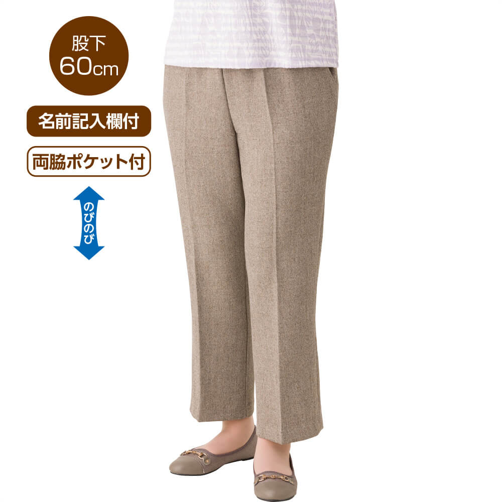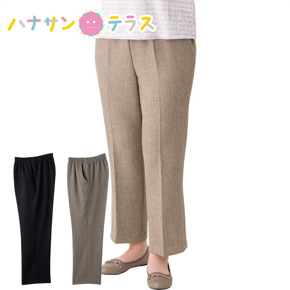 縦伸びストレートパンツ 日本製 高齢者 ズボン M L LL 3L のびる ストレート ストレッチ 足長 レディース 用 婦人 89210
