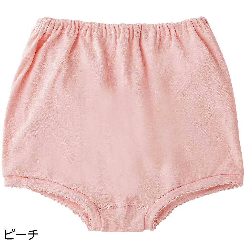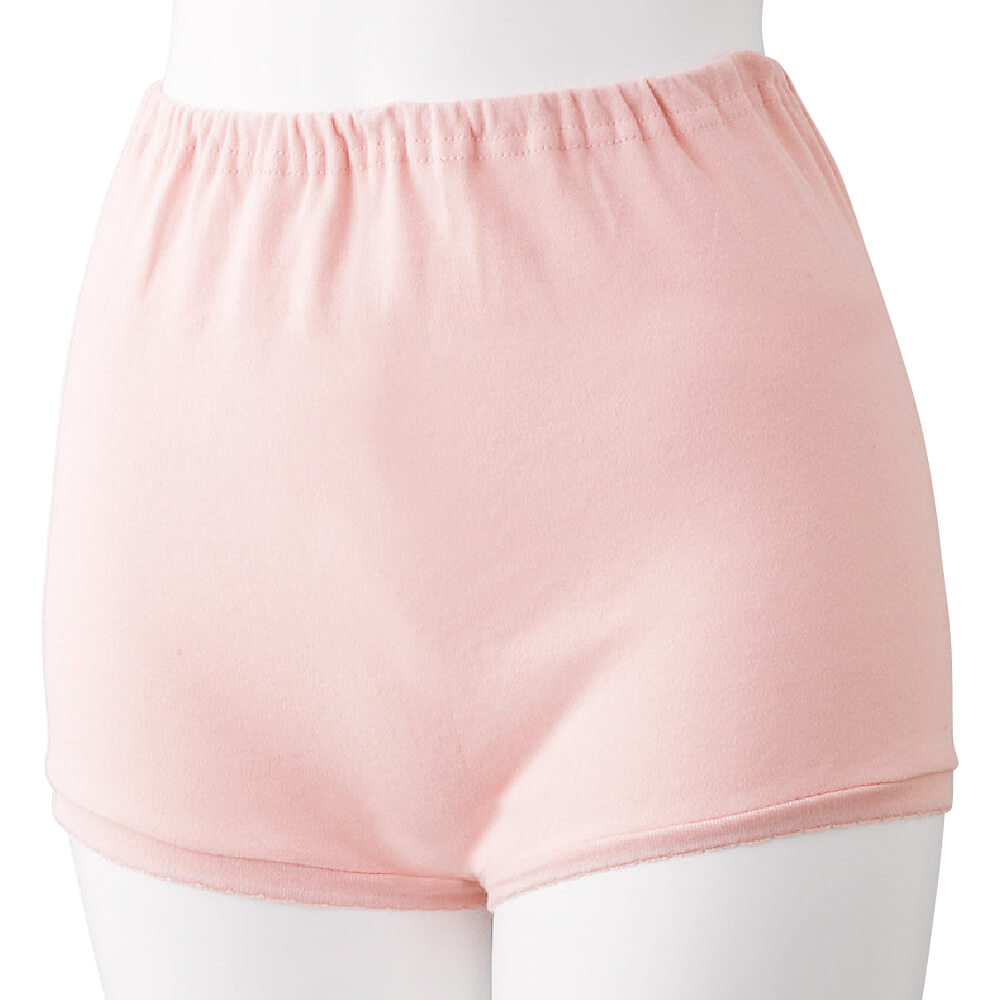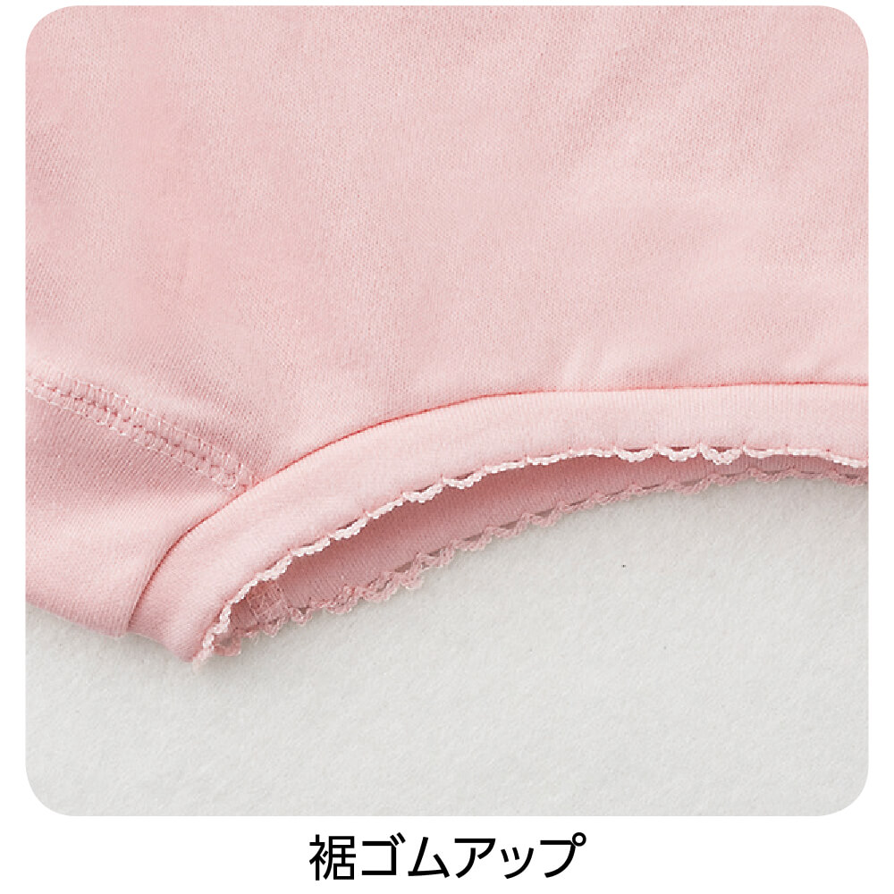 裾部分ゴム入りで足口をやさしく包み込みます。しめつけないゆったり大きめタイプの下ばきです。