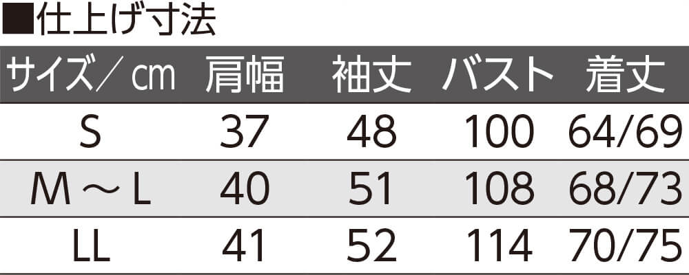 その他…袖口ゴム入りで着脱スムーズ。乾燥機OK(60℃まで)。長袖。Sサイズあり。