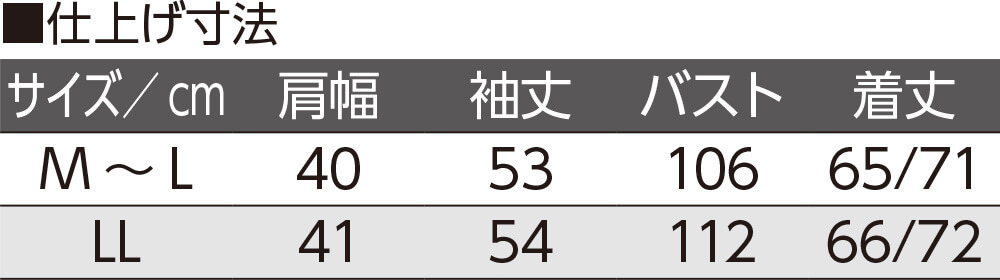 その他…袖口ゴム入りで着脱スムーズ。乾燥機OK(60℃まで)。長袖。