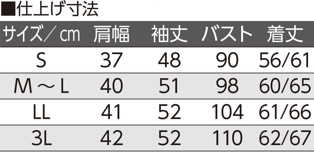 その他…乾燥機OK(60℃まで)。長袖。S・3Lサイズあり。