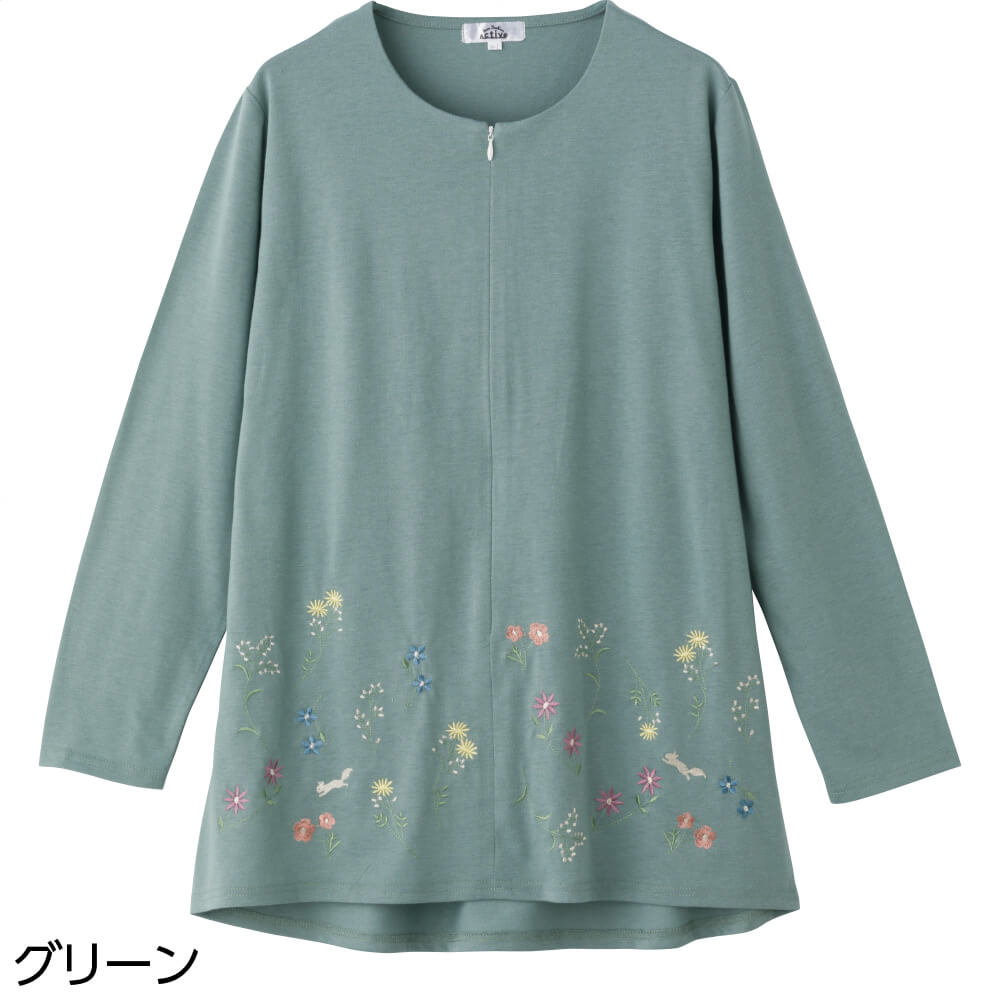 ロングジッパー のびのび 身幅ゆったり 介護用 おしゃれ かわいい 入院用 母の日 敬老の日 誕生日 クリスマス プレゼント 入所 入院 シニア