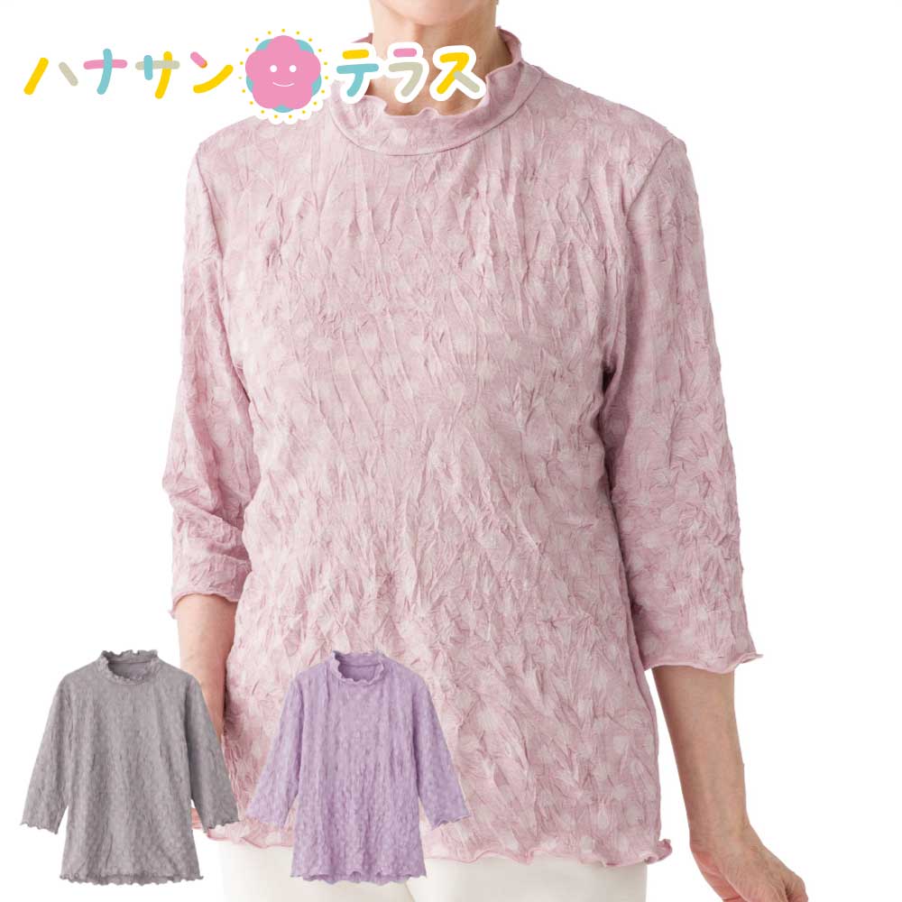 7分袖 背中ゆったり着心地 Tシャツ M L 日本製 腰曲がり 後ろ身頃長め 腰曲がり体型 シニアファッション 70代 80代 90代 100歳 60代 レディース 婦人 用