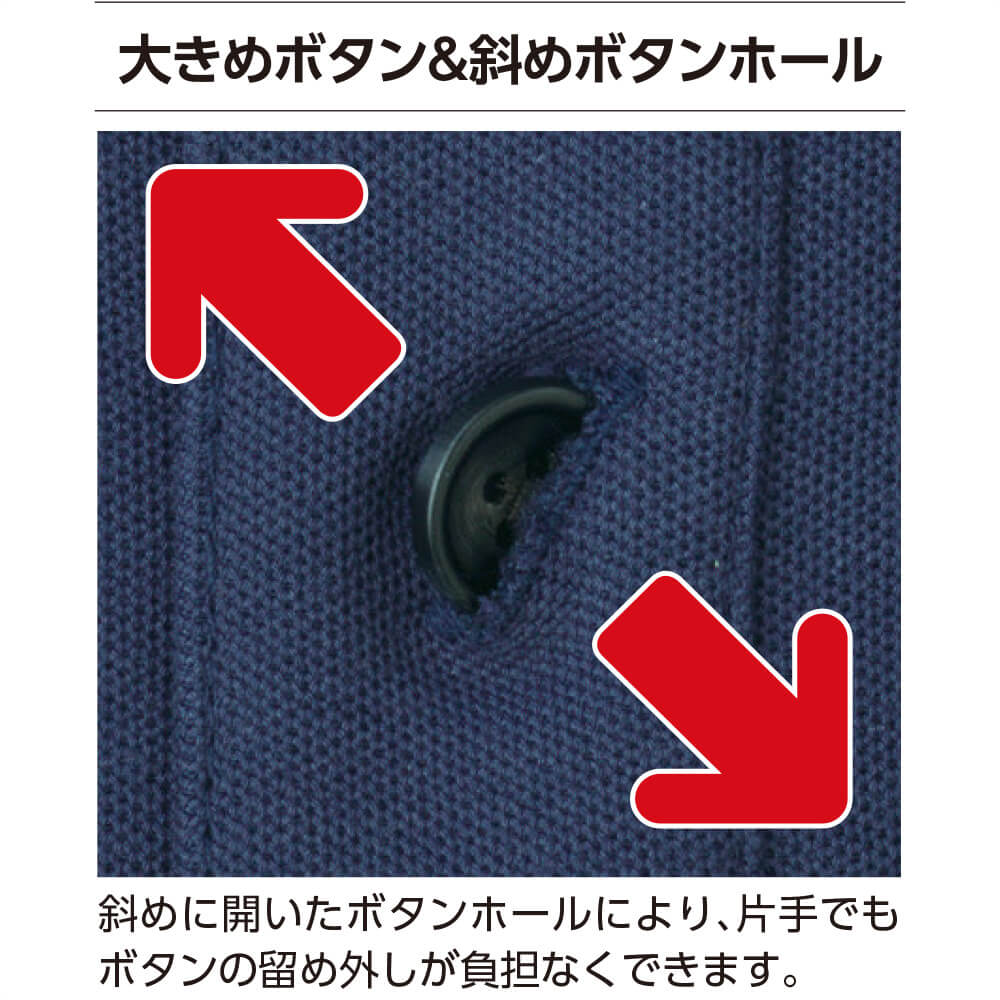 商品名…綿混斜め釦ホール前開きポロシャツ