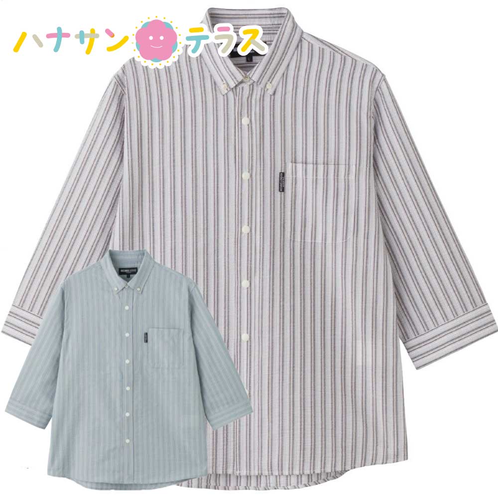 サッカー スナップボタン 7分袖 シャツ M L LL 腰曲がり 後ろ身頃長め 腰曲がり体型 シニアファッション 70代 80代 90代 100歳 60代 メンズ 紳士 用