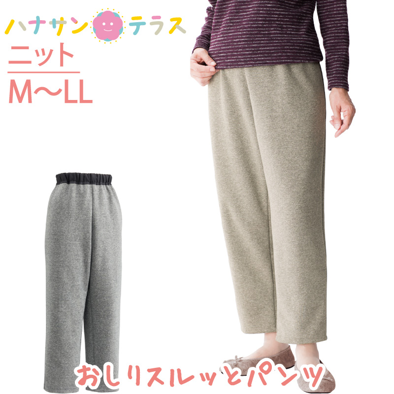 おしりスルッとニットパンツ 高齢者 ズボン M.L.LL ウエストゴム お部屋着 引き上げやすい 片麻痺 リラックスパンツ 婦人
