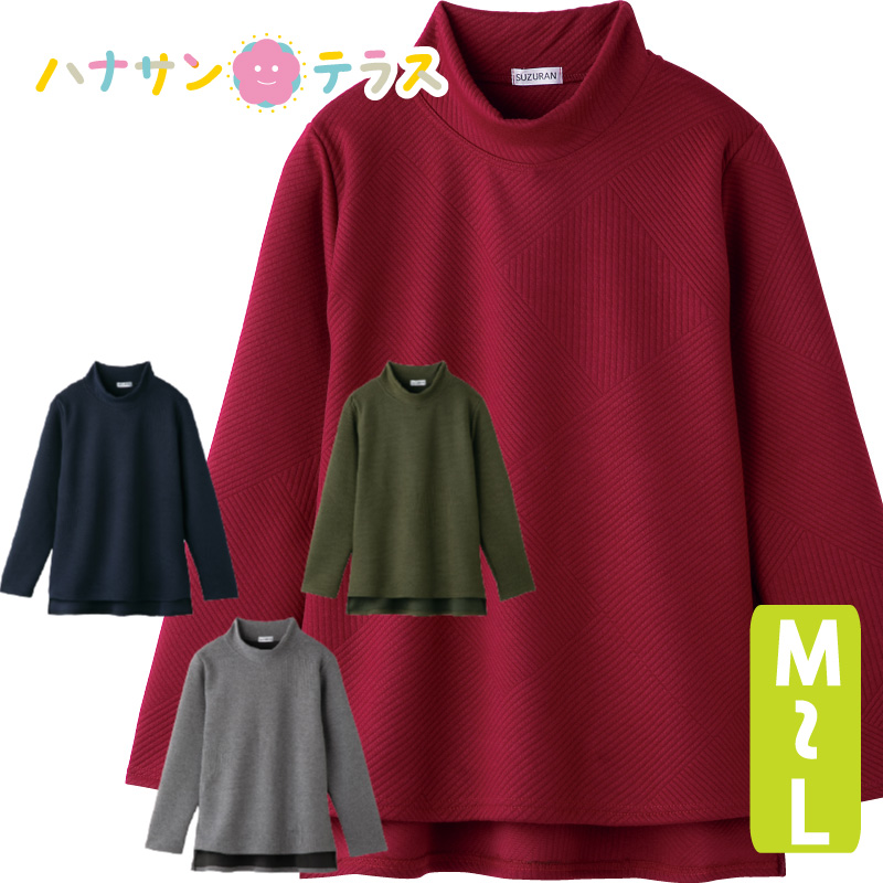 Tシャツ 後ろ長め ジャガード シニアファッション 60代 70代 80代 レディース 秋冬 あたたかい おしゃれ かわいい のびのび 後ろ身頃長め 腰の曲がった人 M L シニア 服 高齢者 女性 90代 普段着 部屋着 ホームウェア おしゃれ着 外出着 婦人 用