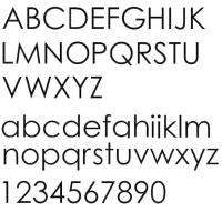 書体は画像の書体(センチュリーG)のみです。大文字・小文字・数字からお選びいただけます。文字の色は黒です。