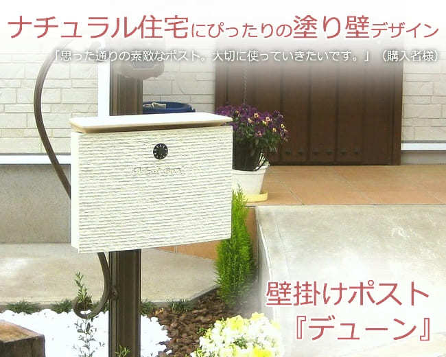 塗り壁の櫛引をモチーフにした、ディーズガーデンのおしゃれなメールボックス。