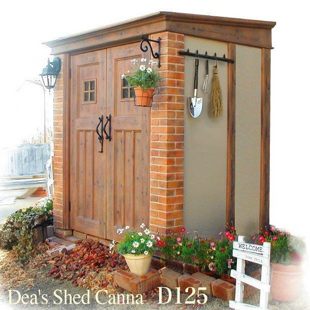 | ■もちろん物置としての機能も抜群。 体部分はカラー鋼板製で観音開きです。 『丈夫で組み立てやすく、物の出し入れもしやすい』とスチール物置から買い換えられたお客様からも大好評です。雨水も中に浸入しないつくりになっています。 サイズは奥行き70cmタイプと125cmタイプの2種があります。 70cmタイプをお求めの方はカンナD70からどうぞ。 | ![]() |