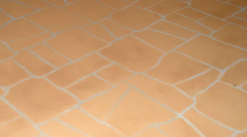 打設したコンクリートが乾く前にステンシルシートを敷いて色粉をまき、乾いてから剥がすと、綺麗なタイル模様ができます。