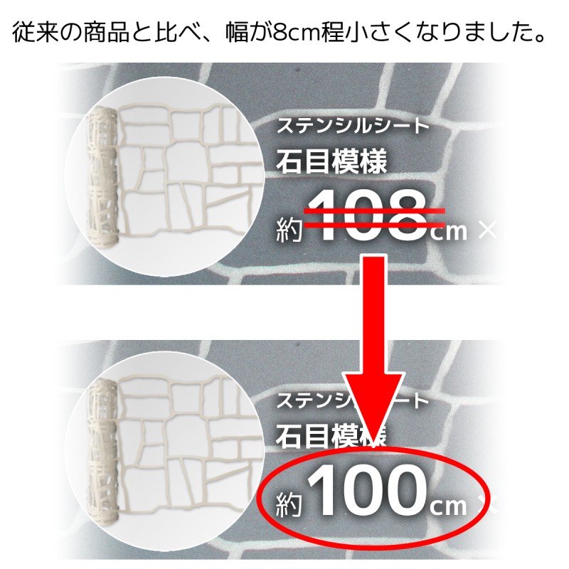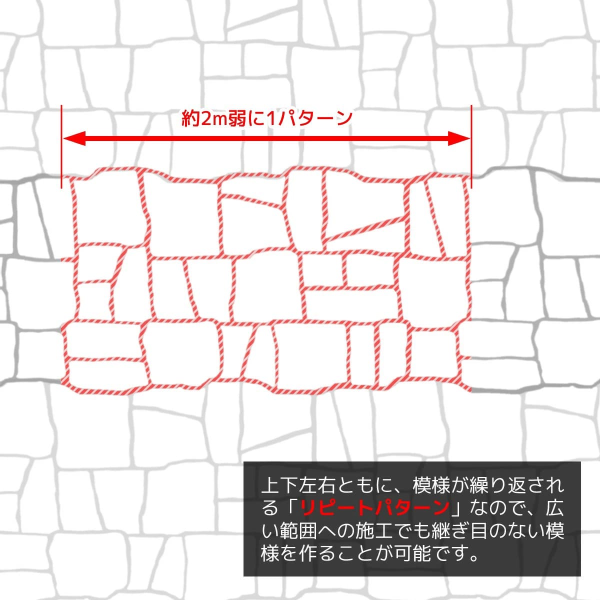 約2m弱ごとに模様が繰り返される「リピートパターン」を採用。上下、左右ともに繰り返されるようデザインされているので、ステンシルを並べることで広い範囲への施工も可能です。