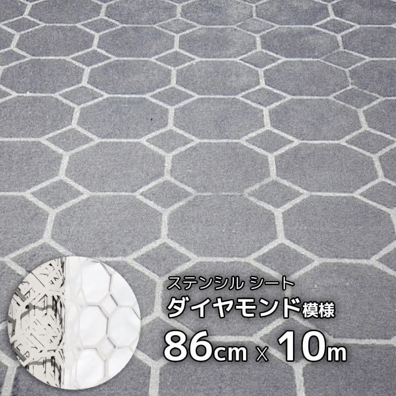 約2m弱ごとに模様が繰り返される「リピートパターン」を採用。上下、左右ともに繰り返されるようデザインされているので、ステンシルを並べることで広い範囲への施工も可能です。