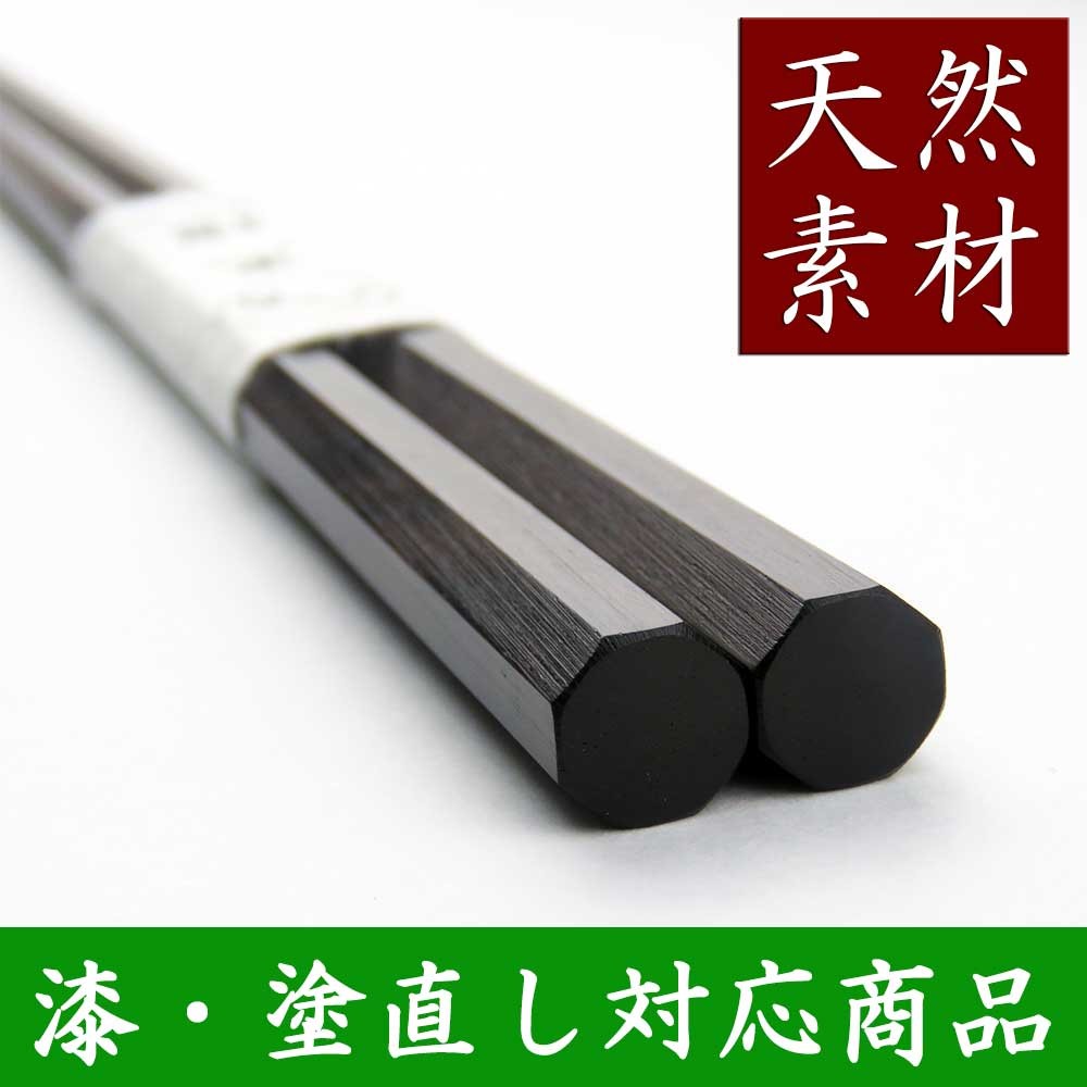 きれいに面取りがされ、箸先まで八角形に仕上げられた黒檀のお箸です。
