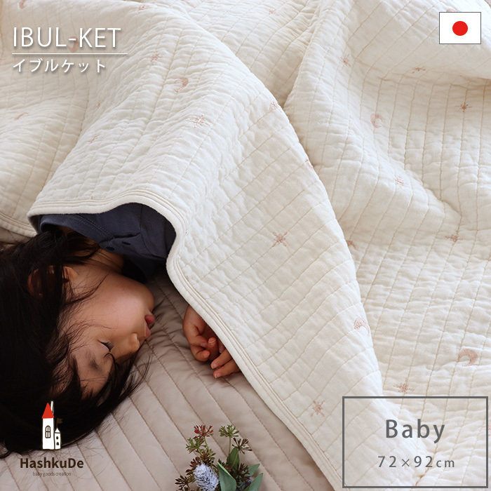 イブル ibul 星と月の刺繍 「ベビーサイズ」 キルティング ケット 純日本製 無添加ダブルガーゼ ベビーケット キルトマット 約72×92cm