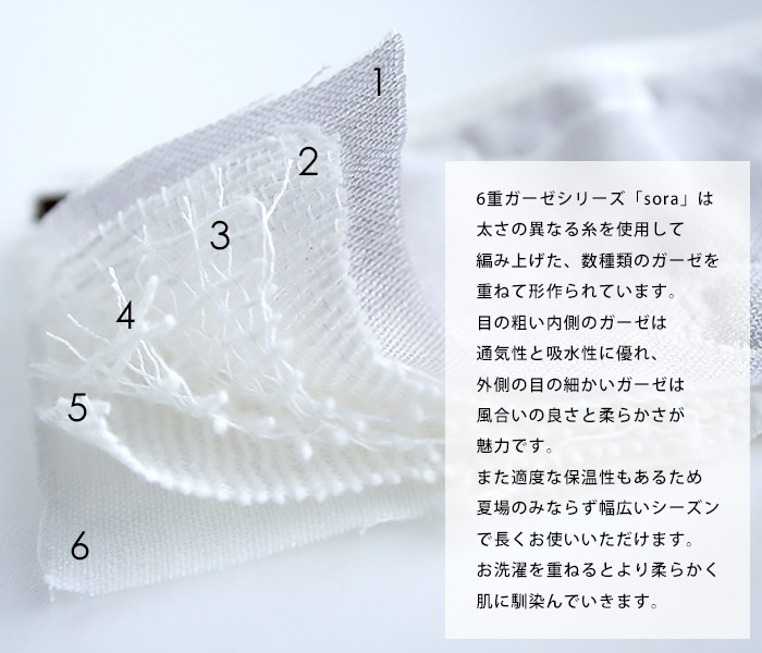 6重ガーゼの生地は、空気をたくさん含みやすいので、