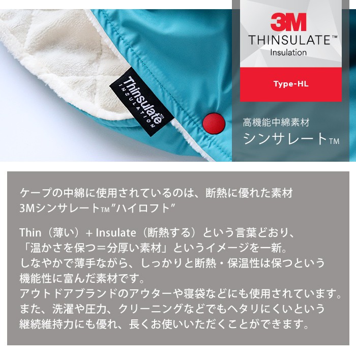 中綿に<シンサレート>ハイロフト中綿素材を使用。
