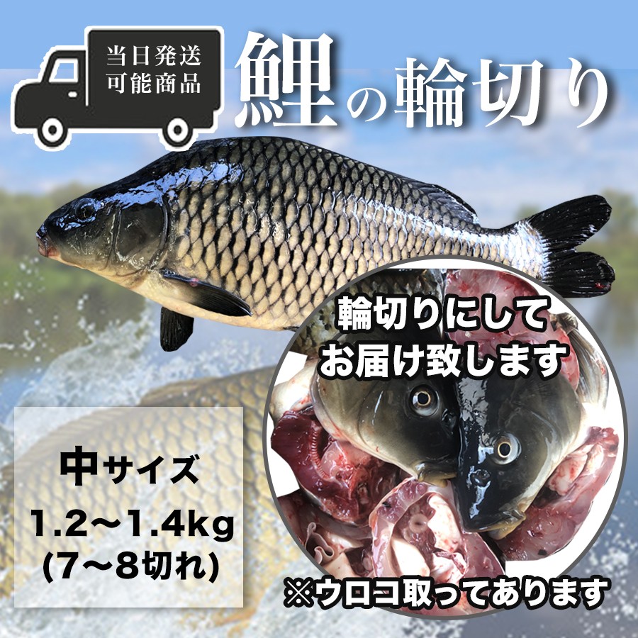 鯉の輪切り 中サイズ 1匹 活鯉時1.2〜1.4kg 厚さ選択可 食用鯉 切り身 コイ こい 販売 鯉こく用 煮付け用 糖醋鯉魚 当日発送可