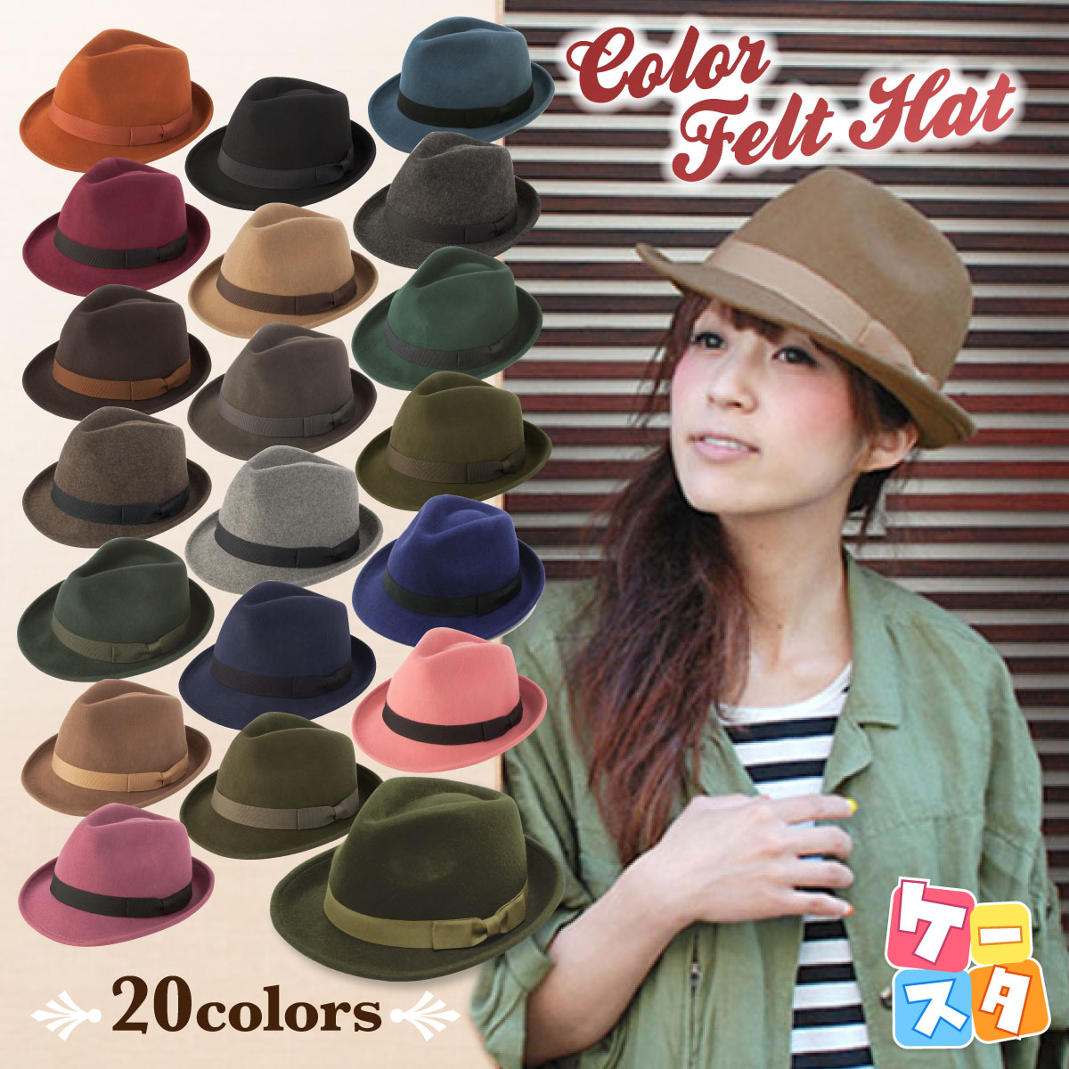 | Kstyleで大人気のフェルトの中折れ帽子!素材も型も申し分ないフェルト中折れ帽子をリーズナブルなお値段で提供させて頂きます!フェルトの毛並みが暖かく、しっかり糊を入れて整形してますので型崩れもしにくいです。コシには細めのリボンを巻いています。フォーマルからカジュアルと幅広く被れます!帽子好きはもちろん、帽子をあまり被らない方でも絶対1つは持っておきたい帽子です☆ ◆ Item Information