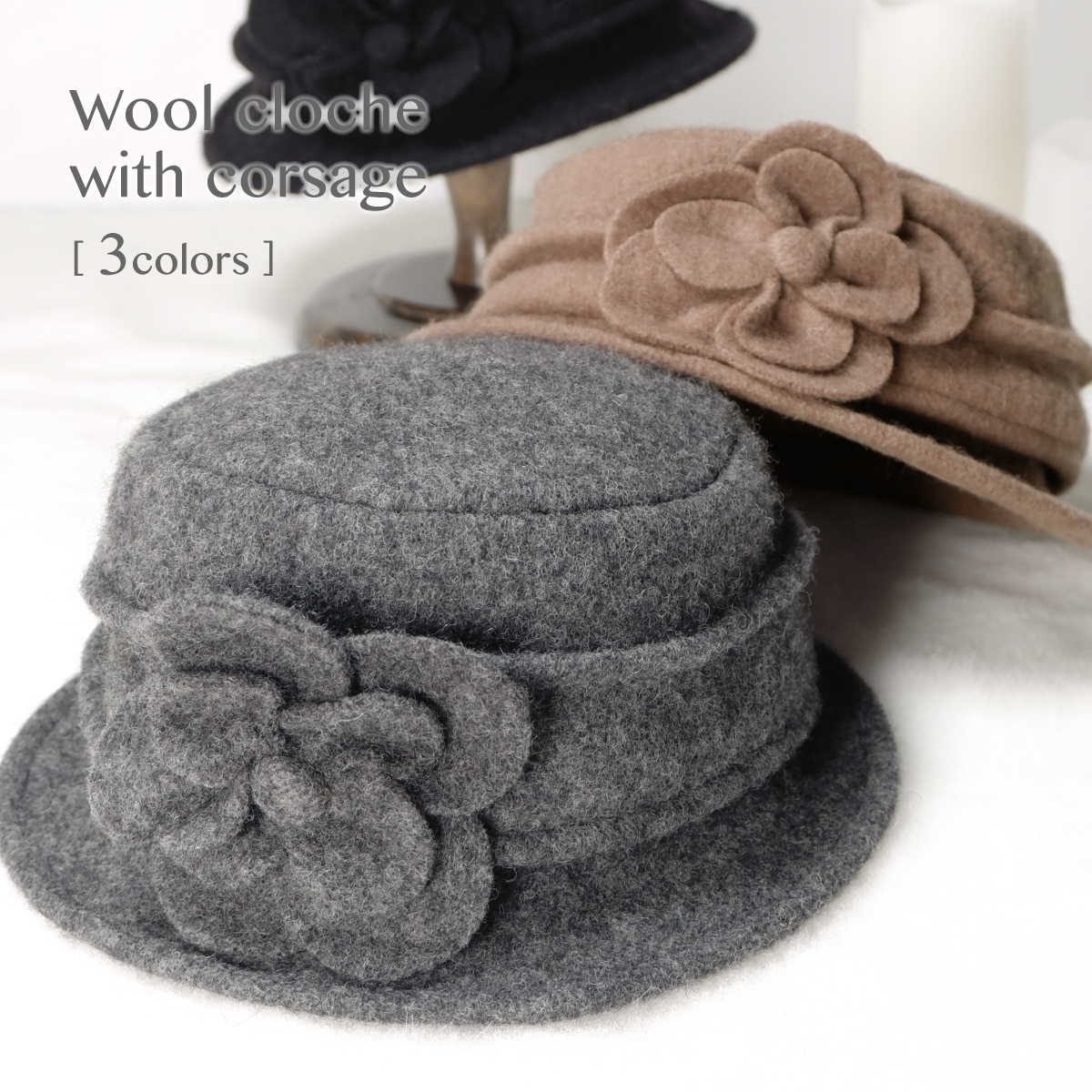 | 商品名 | カメリアコサージュ付ウールクローシェ |