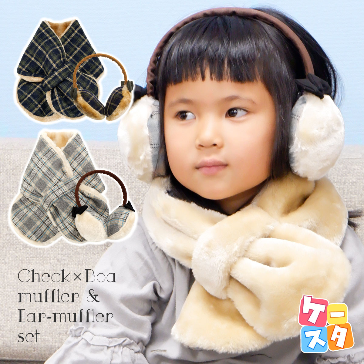 【素材】 [イヤーマフ] 本体:ポリエステル100%、アーム(カバー・リボン):ポリエステル100% [マフラー] チェック柄生地:ポリエステル100%、ファー生地:ポリエステル100% 【生産国】中国製 【カラー】ベージュ / グレー 【備考】 ・直射日光や蛍光灯の長時間の照射で色あせすることがあります。 ・商品写真はできる限り実物を再現するよう心掛けておりますが、モニター・ブラウザ等ご利用環境により色味等差異が生じる場合がありますのであらかじめご了承ください。 | ||||||||||||||||||