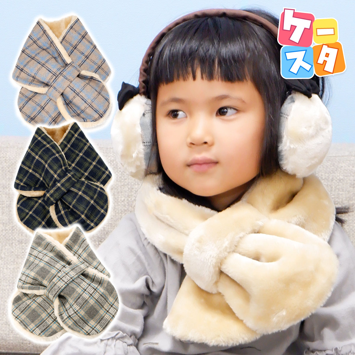 | チェック柄×ボア素材がかわいい、冷たい風が吹く季節のおでかけにぴったりなマフラー!チェック柄面でもボア面どちらを表にしても使えるリバーシブル仕様で、どんなファッションにも合わせやすいカラーなのがうれしいですね♪マフラーの端をループに通すだけの簡単な構造なので、小さなお子さまでもひとりで着脱OK!着用した時に顔まわりや首元がチクチクしないよう、マフラー本体には洗濯表示札やネームタグ等のないシンプルなデザインです。【同素材のイヤーマフ】とおそろいで身に付けても可愛い、プレゼントにもおすすめのアイテムです。 <折りたたみOK> ◆ Item Information