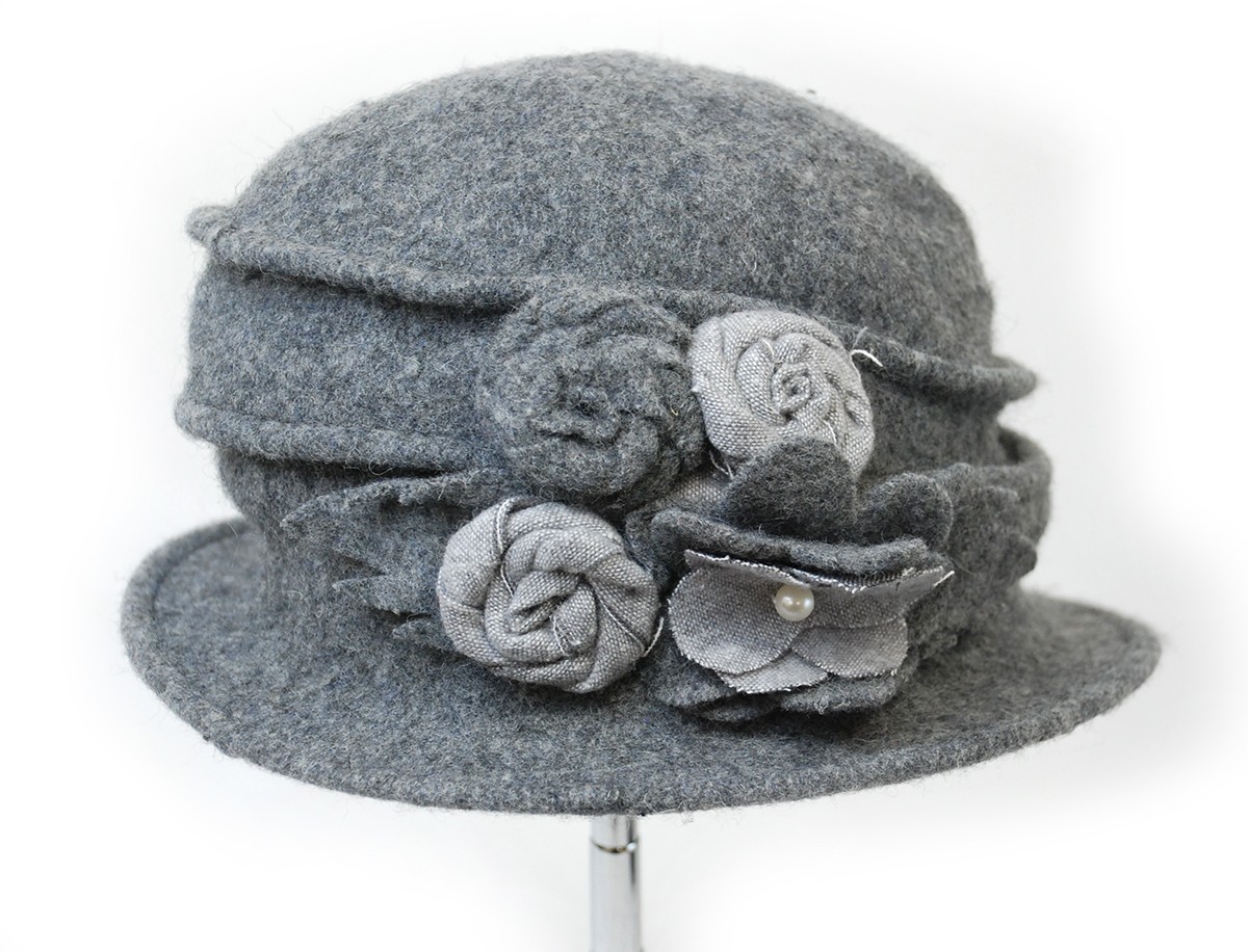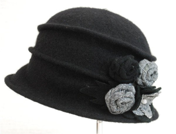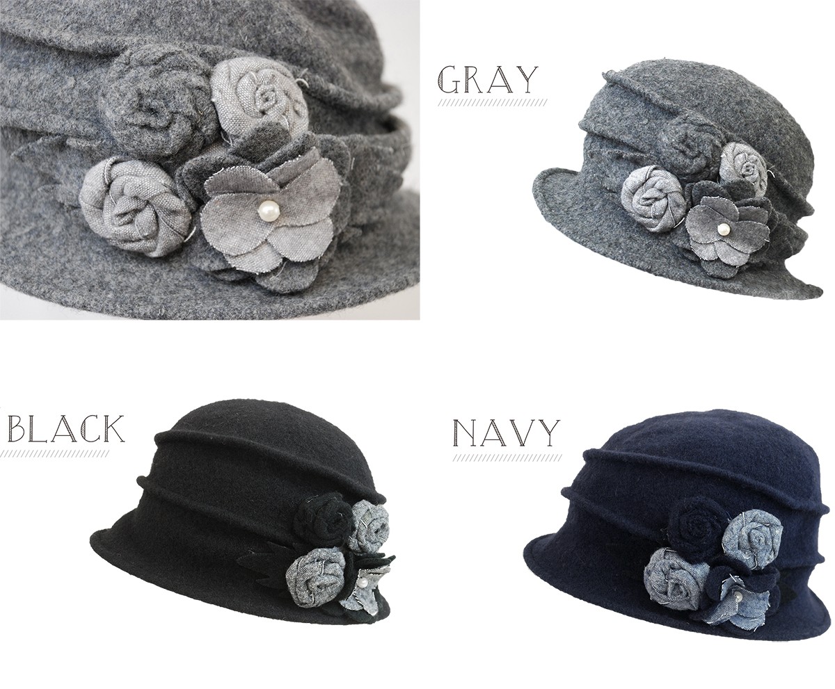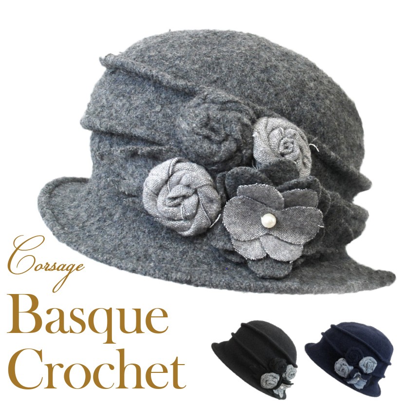 ウールフェルトクロッシェ 帽子 レディース エレガント コサージュ