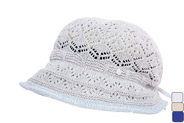 ざっくりしたレース編みで風が通りやすく、ふんわりと髪をつぶれにくくしています。