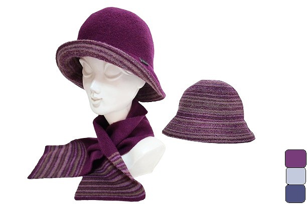 ウール100%ニットを縮絨した、あたたかな帽子&マフラーセット。