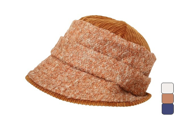 婦人 帽子 イタリア製 インポート Complit クロッシェ ベージュ レンガ ブルー)ネップ生地×コーデュロイ ミセス 女性 秋冬 23693