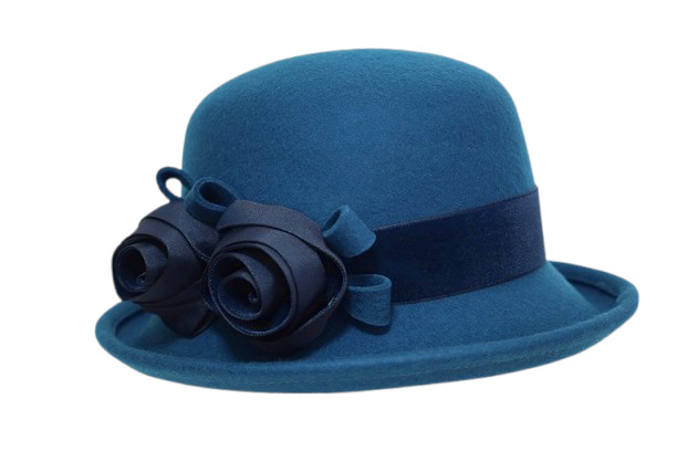 婦人帽子 イタリア製 インポート Complit ウール フェルト帽子 ターコイズ ブルー 小さいサイズ ショートブリム 女性 秋冬 23699-bl
