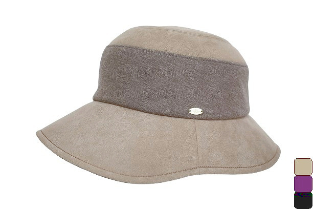 婦人 帽子 日本製 スエード調 人工皮革 ウエーブ風 変形ツバ マリオン青山 ベージュ パープル ブラック サイズ調節付き ミセス 秋冬 MN195