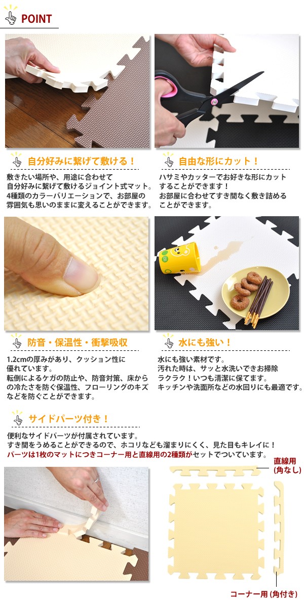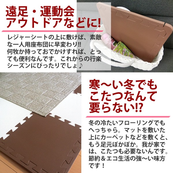 EVA素材を使っており、防音、保温性、衝撃に優れたジョイントマット。