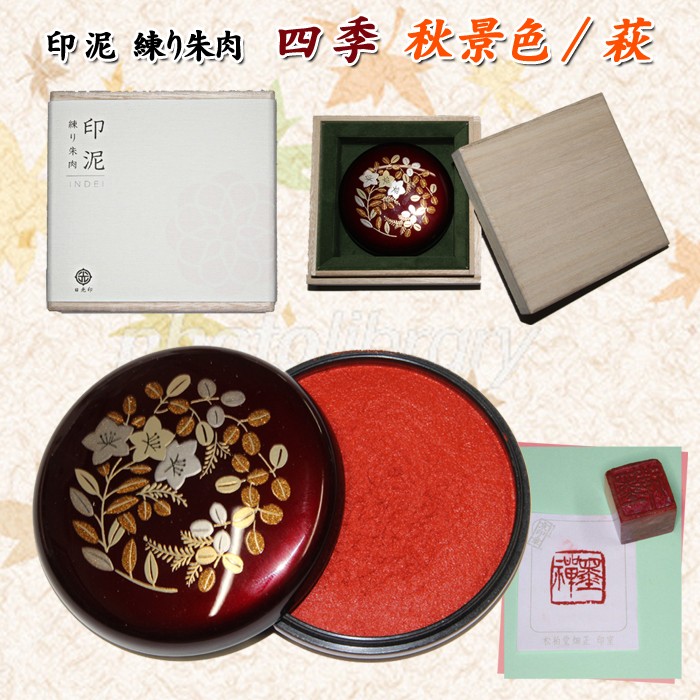 色味の違いにより四季折々の変化を楽しんでいただける風雅な極上朱肉です。墨の香りが漂います。