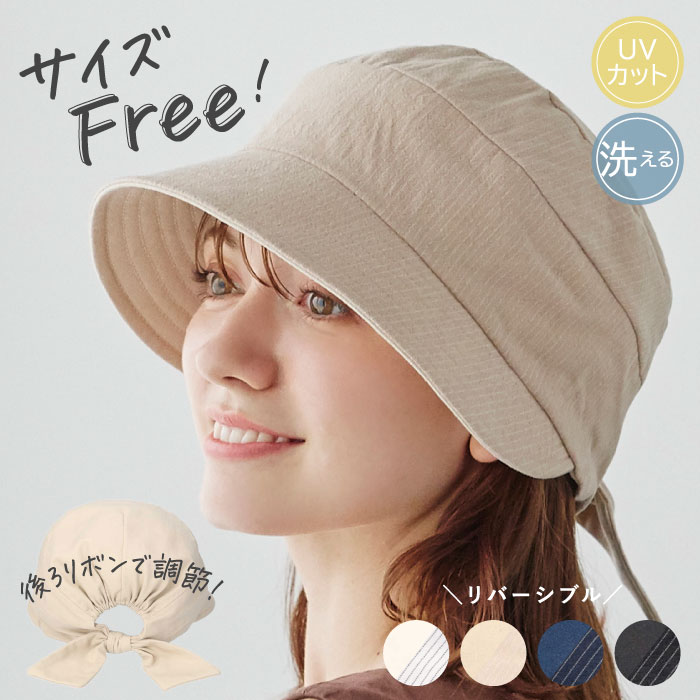 | 商品説明 | <サイズを気にせずかぶれる サイズフリーキャスケット>サイズ調節機能 後ろの結び目を調節することでSS〜LLサイズ(約53cm〜62cm位)まで対応可能。後ろ姿は大人可愛リボンのデザイン サイズ調節機能だけでなく、しっかり可愛いリボンのデザイン。被りやすい広めのつばでUVカット 横に広いつばは、小顔効果を発揮します。ツバ部分はUVカット率90%以上と日よけ対策にも使えるアイテムです。 深さもしっかりあるので、ノーメイクの時にも安心!嬉しいリバーシブル仕立て 無地と、ストライプのリバーシブル仕様なので その日のコーディネートに合わせて被っていただけます。手洗いOK♪ ご家庭で手洗い洗濯が可能なのでいつでも清潔にご使用いただけます。 コンパクトに畳んで持ち運びも可能|
