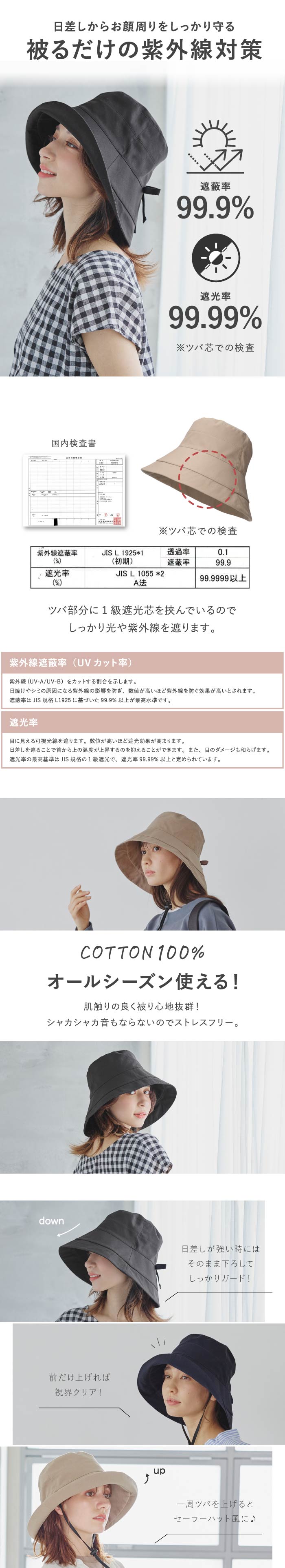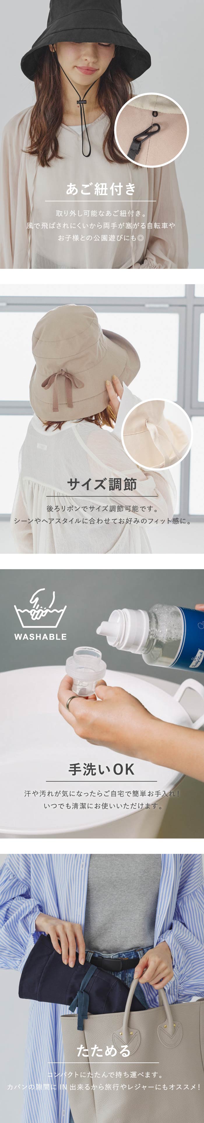 | 商品説明 | 綿素材のカサブランカ風のハット。ブリムの上げ方で変化が付けやすく、ブルトン、セーラーにもアレンジが活躍です。広めのつば幅が顔周りをしっかりカバー。つば部分には遮光芯が入っているので、紫外線遮へい率99.9%で日差しから守ってくれます。取り外し可能なあご紐、サイズ調整可能、手洗い可能など、春夏シーズンにうれしい機能満載の当店おススメハットです。 ※掲載画像は室内外での撮影による明度の違いや、閲覧いただいているディスプレイの明暗等により、色味が実物と異なって見える場合がございます。 ※生産過程においてサイズ感や形に個体差が生じる場合がございますので表記サイズは目安としてお考えください。 |