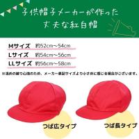キツキツの紅白帽をかぶっているお子様のママ必見!!大きいサイズの紅白帽が入荷いたしました。子供帽子メーカーさんのきちんとした商品です。赤と白のリバーシブルはもちろん、帽子の後ろの部分には引っかけ用のゴムも付いています。吊るし用の紐を付けなくてはいけない学校の場合はとっても便利。さらに!つば長デザインとつば広デザインの2種類をご用意。つば長は一般的なデザイン。つば広はつば幅が横に広く小顔見えしてくれ、後頭部にゆとりがあるので髪を結んだままでもかぶりやすくなっています◎小学生、中学生にゆったり快適な帽子です。