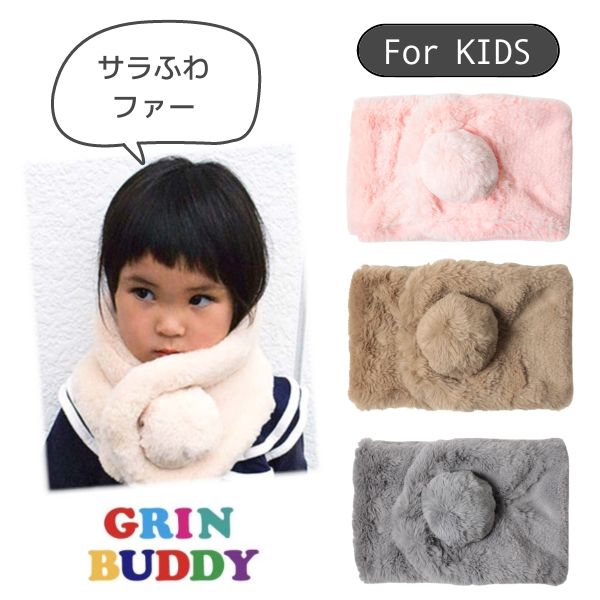 セール GRIN BUDDY ファーマフラー ポンポン付き かわいい 女の子 マフラー ストール ネックウォーマー 防寒 Pon Fur Muffler NG-5167 GZH-9235