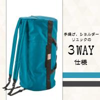 大容量42Lのボストンバッグ。手提げ、ショルダー、リュックになる3WAY仕様!!リュックの肩紐は、必要に応じて収納可能。水分を通しにくい、裏コーティングのポリエステル生地を使用。ジッパー付きの外ポケット3つと、内側にはポケットや間仕切りもなく、多用途に大容量でご使用いただける作りに。旅行や合宿、部活の試合など荷物の多いシーンで大活躍!