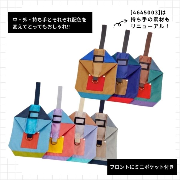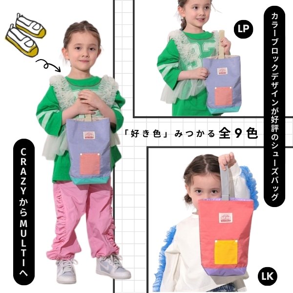 大人気シューズバッグのキュートなマルチカラー♪【4645003】ではカラーをアップデート!開閉しやすい輪っか式。内側についたネームホルダーで名前も晒されずに安心。フロントにはちっちゃいポケットも付いています。軽いのでお子様が持っても負担がかかりにくいところも◎ お祝いやギフトにもおすすめです。
