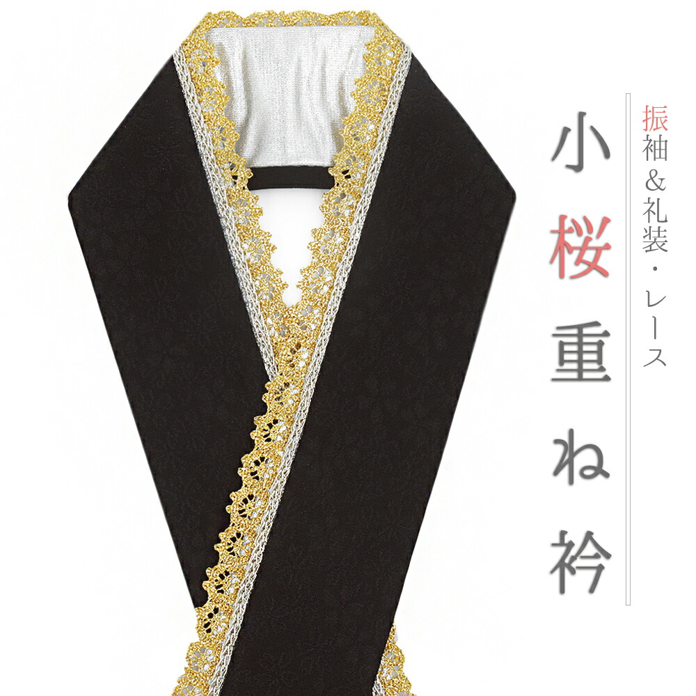 重ね衿 正絹 振袖 成人式 黒 黒茶 焦げ茶 金 桜 小銀 レース フリル チェーン フォーマル 日本製 お洒落 重ね襟 訪問着 結婚式 No.10-6744