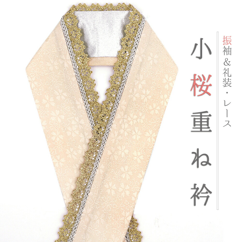 重ね衿 正絹 振袖 成人式 ベージュ クリーム色 金 桜 小桜 花 銀 レース フリル チェーン フォーマル 日本製 訪問着 結婚式 No.10-6748