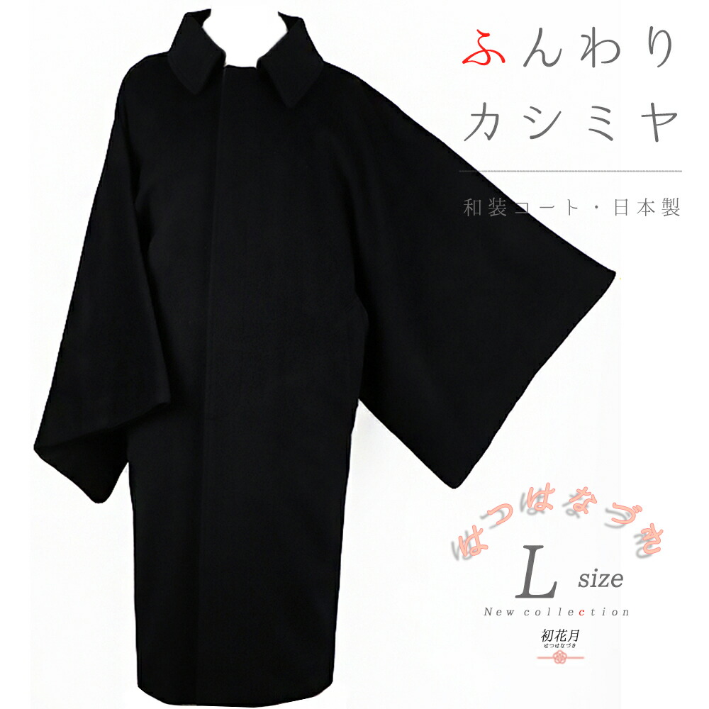 和装コート 角袖 カシミヤ混 黒地 ブラック ロング メンズ Lサイズ 高級 起毛仕上げ シャルム加工 日本製 着物 長コート 長羽織 防寒 厳寒 秋冬 おしゃれ かっこいい 和装 No.3-0502