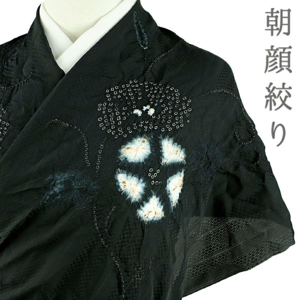 浴衣 絞り 黒地 花 鹿の子絞り ポリエステル 和柄 未仕立て 反物 着物 和装 おしゃれ着 カジュアル モダン レトロ おしゃれ 可愛い 粋 涼しい 大人 上品 和 No.4-0664