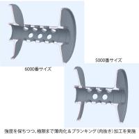 重く回転が鈍いため飛距離が出ない、一般的なアルミ素材の純正スプールに満足できず、航空機にも使用されるハイグレード超々ジュラルミンを素材にした、超軽量スプールを独自設計。キャストの際に障害となる、「慣性モーメント」の大幅な低減に成功しました。さらに、ライギョゲームにありがちな、スプールに巻いたラインの「スリップトラブル」を防止する機能も加え、商品化しました。